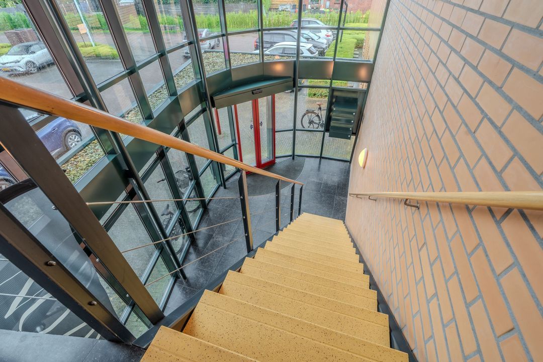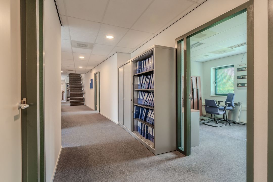 Indeling: Entree met balieruimte, trapopgang naar 2e etage, totaal 6 kantoorruimten (waarvan 1 een grote 'kantoortuin' betreft), copy-ruimte, server-ruimte, gescheiden toiletgroep, pantry.