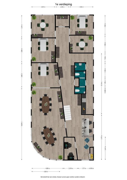 Deze informatie alsmede de inhoud van eventuele bijlagen is zorgvuldig samengesteld. Desondanks wordt onzerzijds geen aansprakelijkheid aanvaard ten aanzien van onvolledigheid en/of onjuistheid, dan wel de gevolgen daarvan. De vermelde informatie is een uitnodiging om in onderhandeling te treden en mag niet als grondslag voor een overeenkomst worden beschouwd. De kennisgeving van deze informatie alsmede een eventuele huurovereenkomst is onder voorbehoud definitieve goedkeuring opdrachtgever. Opdrachtgever heeft het recht de verhuurprocedure naar eigen goeddunken, zonder kennisgeving, te veranderen en heeft tevens het recht om te allen tijde met één of meer gegadigden te onderhandelen en/of zonder opgaaf van reden zich terug te trekken, welke niet zal leiden tot enige aanspraak en/of vergoeding. Overname, plaatsing op internetsites, verveelvoudiging op welke andere wijze dan ook van deze inhoud is niet toegestaan. Alle maten en oppervlakten zijn indicatief. Prijs-/druk-/zetfouten en wijzigingen voorbehouden.