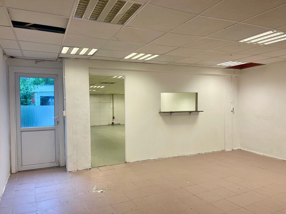 * representatieve winkelpui (kunststof) v.v. dubbel glas en toegangsdeur.