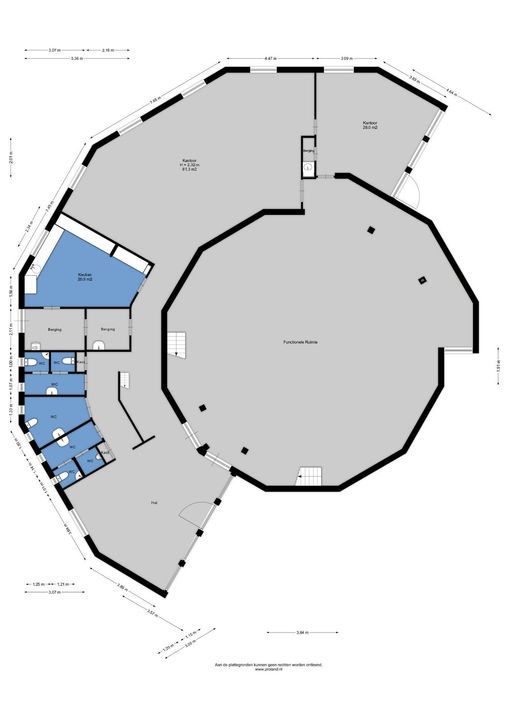 Deze informatie alsmede de inhoud van eventuele bijlagen is zorgvuldig samengesteld. Desondanks wordt onzerzijds geen aansprakelijkheid aanvaard ten aanzien van onvolledigheid en/of onjuistheid, dan wel de gevolgen daarvan. De vermelde informatie is een uitnodiging om in onderhandeling te treden en mag niet als grondslag voor een overeenkomst worden beschouwd. De kennisgeving van deze informatie alsmede een eventuele huurovereenkomst is onder voorbehoud definitieve goedkeuring opdrachtgever. Opdrachtgever heeft het recht de verhuurprocedure naar eigen goeddunken, zonder kennisgeving, te veranderen en heeft tevens het recht om te allen tijde met één of meer gegadigden te onderhandelen en/of zonder opgaaf van reden zich terug te trekken, welke niet zal leiden tot enige aanspraak en/of vergoeding. Overname, plaatsing op internetsites, verveelvoudiging op welke andere wijze dan ook van deze inhoud is niet toegestaan. Alle maten en oppervlakten zijn indicatief. Prijs-/druk-/zetfouten en wijzigingen voorbehouden.