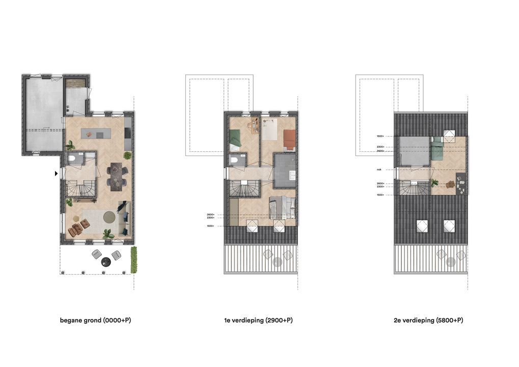 De voortuin vanaf de straat tot aan de veranda wordt aangelegd opgeleverd. Als bewoner kun je kiezen uit een bloemenmengsel. Het zorgt zowel voor uniformiteit als diversiteit. De oprit is naar eigen inzicht in te richten. Er is ruimte voor twee parkeerplaatsen op eigen terrein. Aan de achterzijde van de woning bevindt zich een klassieke, diepe tuin met veel privacy. De onderhoudsarme verandawoning is bij uitstek geschikt voor gezinnen met behoefte aan veel slaap- en bergruimte, maar ook aanpasbaar naar een levensloopgeschikte variant. Speelt je leven zich vooral gelijkvloers af? Ontvang je graag vrienden of familie? Een uitbouw van 1.20 tot wel 3.00 meter is ook mogelijk. Verder kun je kiezen voor een uitvoering met het gehele woonprogramma op de begane grond. Daarmee ben je meteen voorbereid op de toekomst. Handig toch?