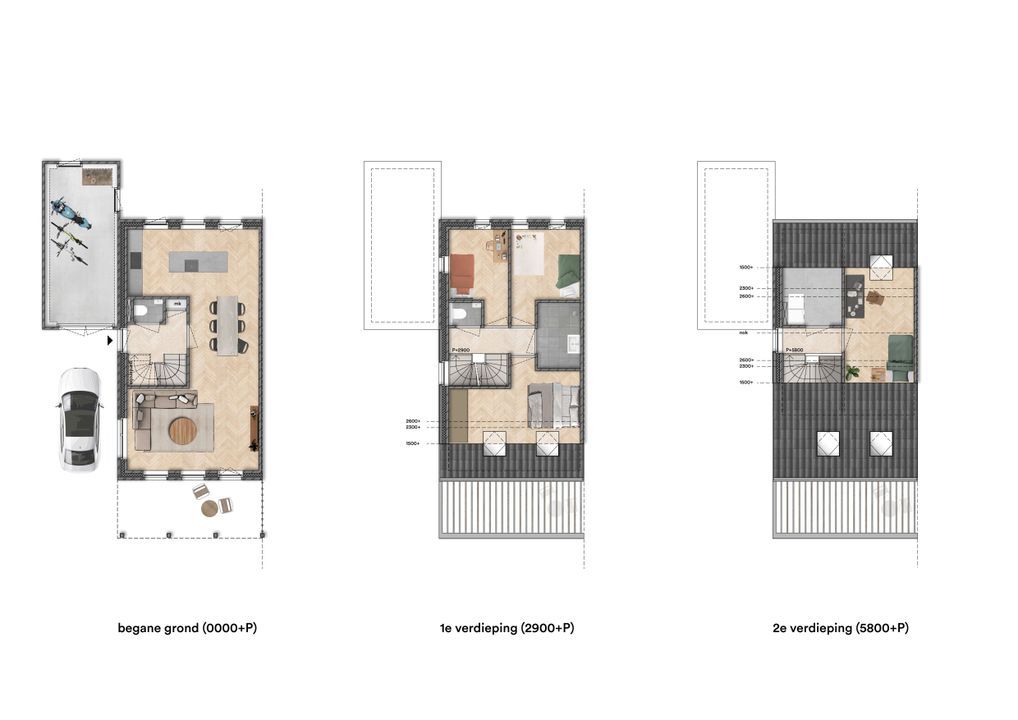 De voortuin vanaf de straat tot aan de veranda wordt aangelegd opgeleverd. Als bewoner kun je kiezen uit een bloemenmengsel. Het zorgt zowel voor uniformiteit als diversiteit. De oprit is naar eigen inzicht in te richten. Er is ruimte voor twee parkeerplaatsen op eigen terrein. Aan de achterzijde van de woning bevindt zich een klassieke, diepe tuin met veel privacy. De onderhoudsarme verandawoning is bij uitstek geschikt voor gezinnen met behoefte aan veel slaap- en bergruimte, maar ook aanpasbaar naar een levensloopgeschikte variant. Speelt je leven zich vooral gelijkvloers af? Ontvang je graag vrienden of familie? Een uitbouw van 1.20 tot wel 3.00 meter is ook mogelijk. Verder kun je kiezen voor een uitvoering met het gehele woonprogramma op de begane grond. Daarmee ben je meteen voorbereid op de toekomst. Handig toch?
