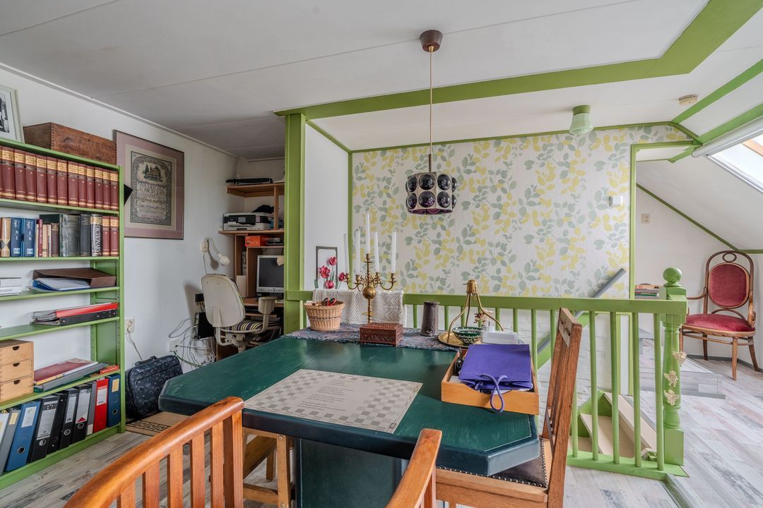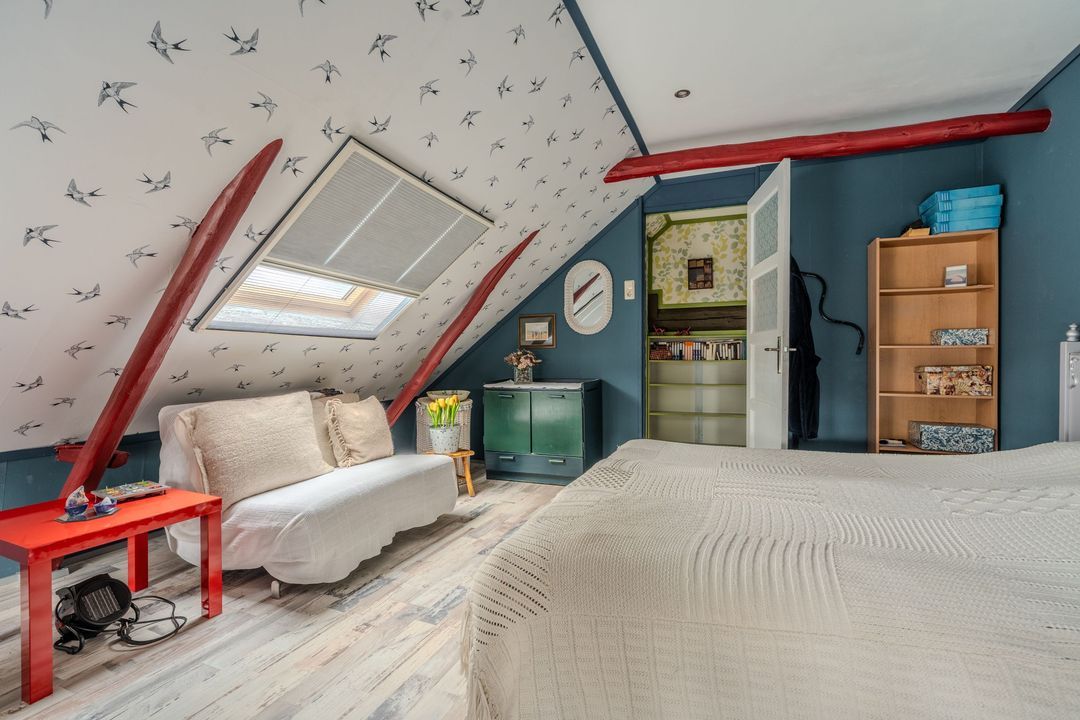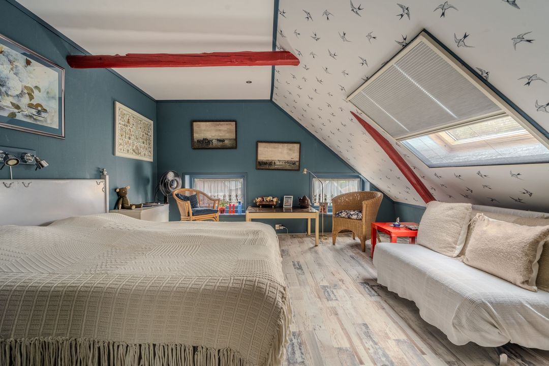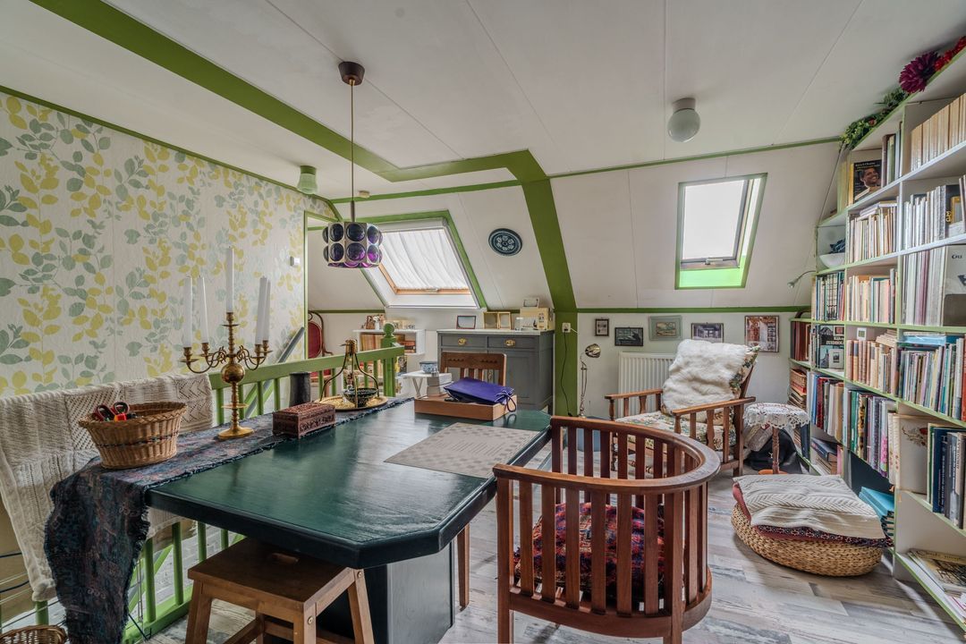 Verdieping: een overloop met study geeft toegang tot twee slaapkamers, op de voormalige graanzolder boven het voorhuis.