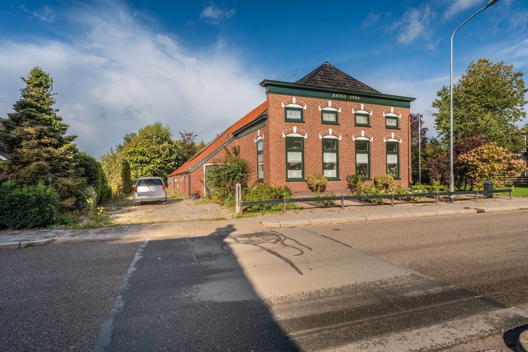 Fraai aan de lintbebouwing van het dorp, aan doorgaande weg gelegen, VRIJSTAANDE WOONBOERDERIJ (ca. 1906) met grote inpandige schuur, erf, tuin en weiland op een totaal perceel van ca. 5.193m². Wat een mogelijkheden zijn er hier... aan ruimte geen gebrek, noch in de karakteristieke Ommelander boerderij, noch er omheen. Bij uitstek geschikt voor tuin- en dierenliefhebbers, maar ook voor een ruimte vergende hobby of de uitbreiding in de schuur van het aantal kamers bij het woonhuis. De woonboerderij is na aktepassering ook direct goed bewoonbaar en heeft een lichte woonkamer, eetkamer, keuken, totaal drie slaapkamers en een royale badkamer. Daarbij ook een gelijkvloerse indeling. De inpandige schuurruimte is verdeeld in drie delen: Berging, paardenstal en een garagedeel met grote toegangsdeur.